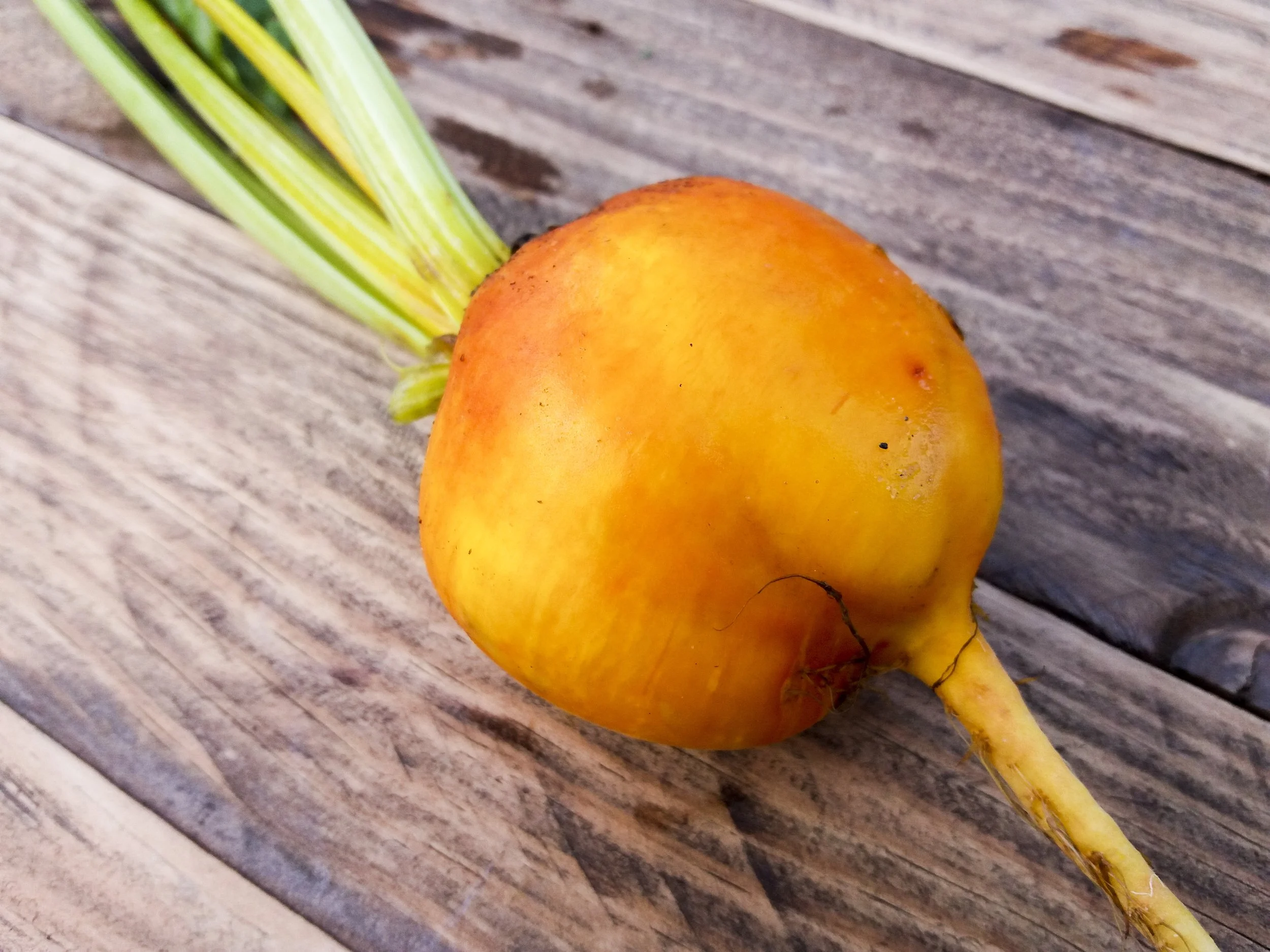 Estas remolachas doradas mini son más dulces que las bicolor y tampoco se deben cocinar. Hay que cortarles cortarle el extremo de la raíz que “parece un hilo”. Lavar bien con un cepillo. La piel tiene un toque amargo. Si eso no es un inconveniente entonces se puede proceder a realizar los siguientes paso. Si no, entonces hay que pelar con mucho mucho cuidado para que llevarnos parte de la “pulpa”.